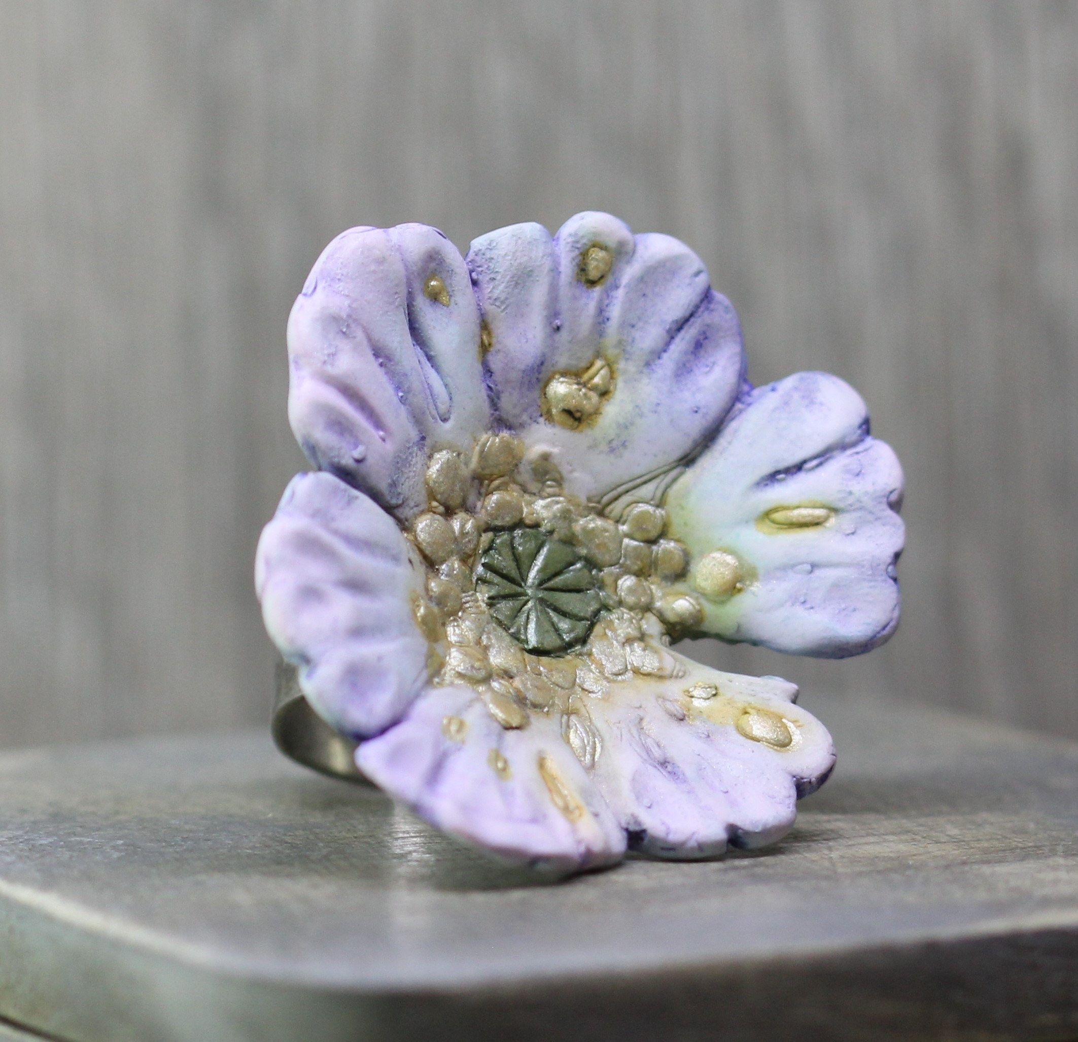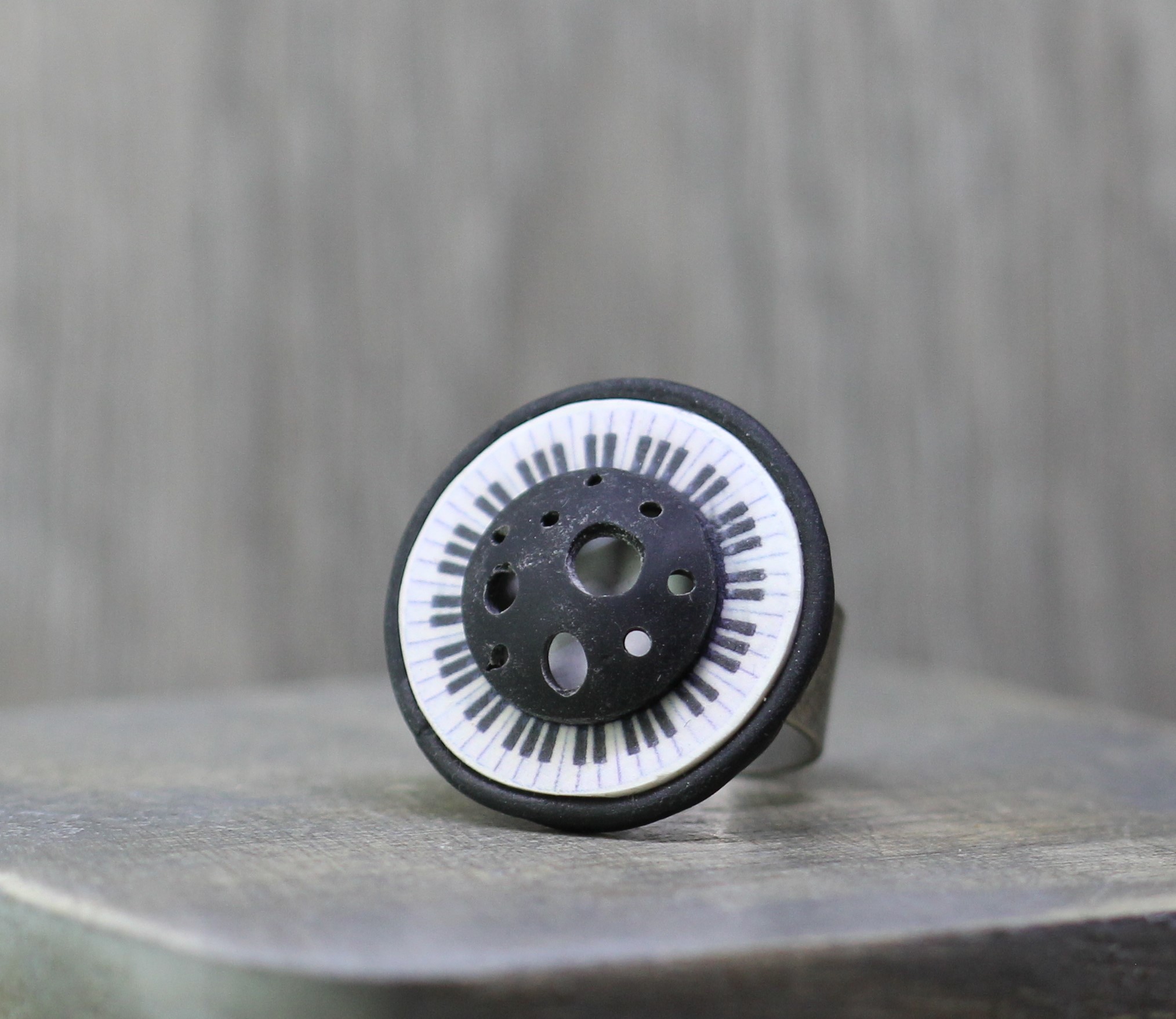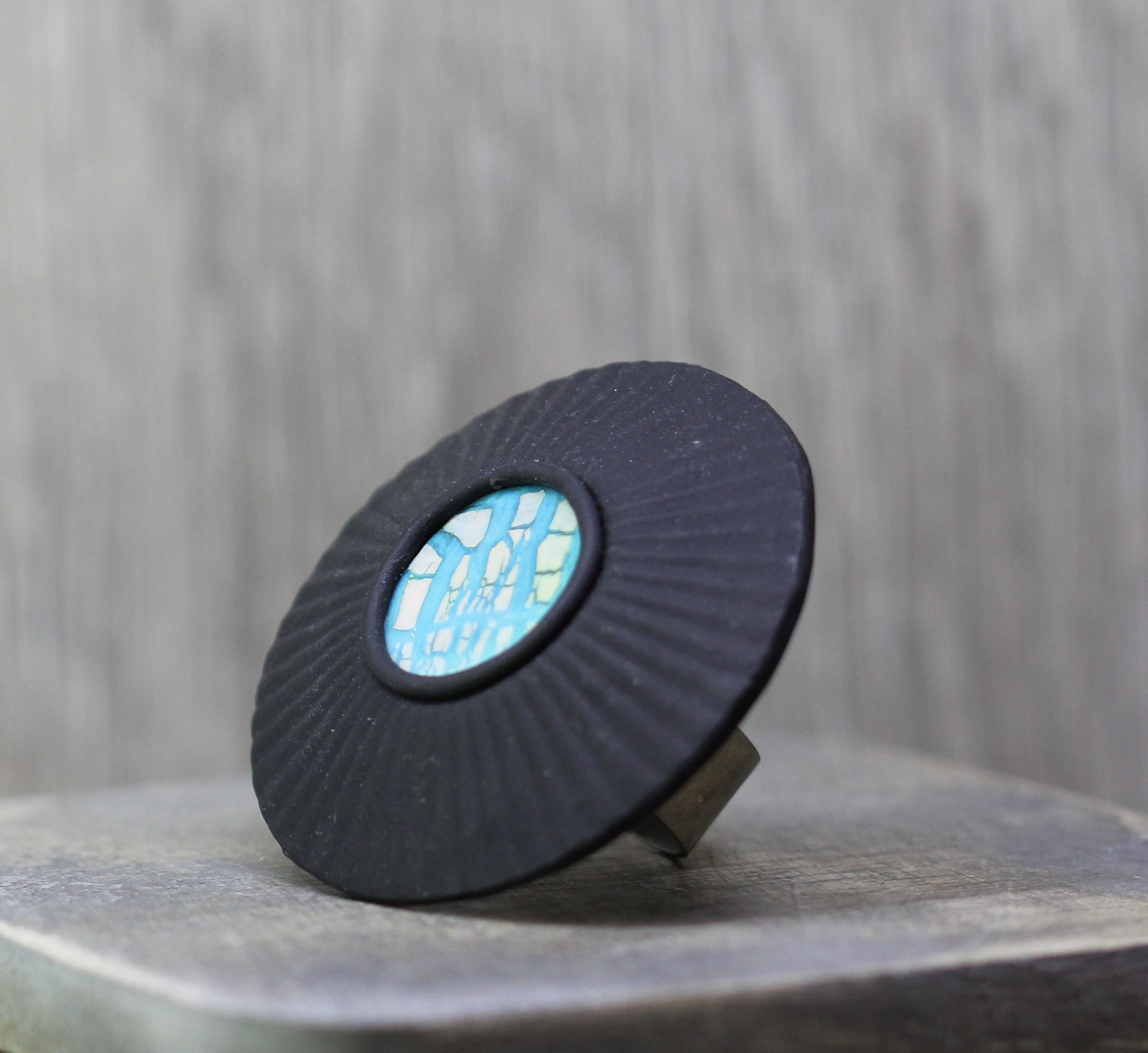 Adjustable Ring made from Polymer clay and resin.