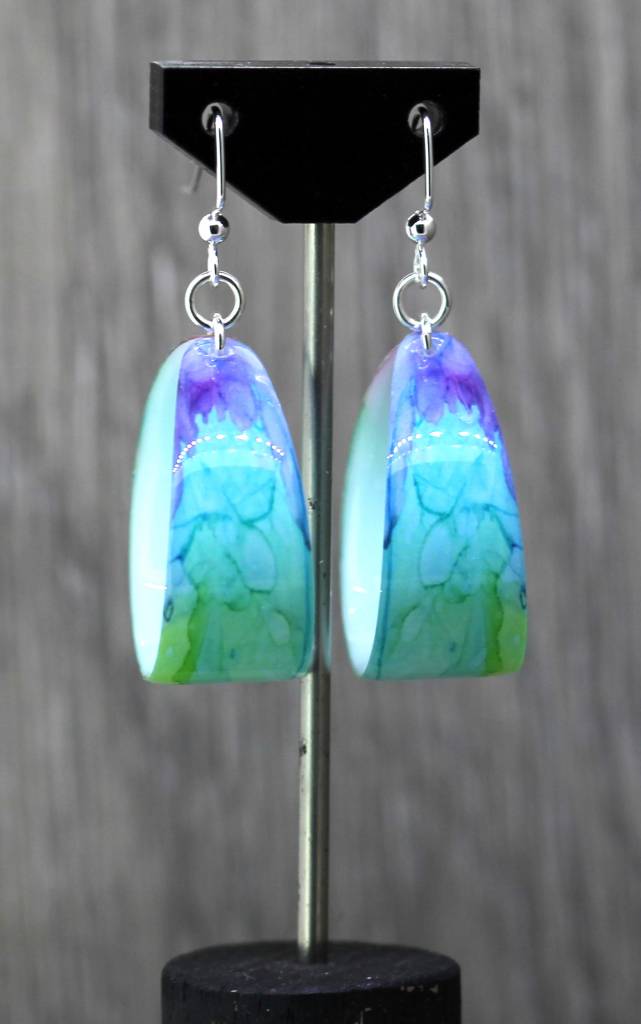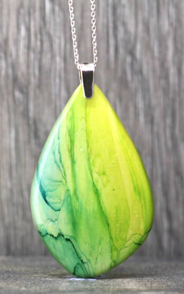 From an original alcohol ink painting greens blues and yellow and pink.